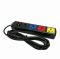 Mỗi ổ cắm có một màu khác nhau, giúp người dùng có thể phân biệt ổ cắm một cách dễ dàng. Ổ cắm có nắp che an toàn, an toàn với người dùng, mặt đa năng có thể cắm được hầu hết phích cắm trên thế giới.