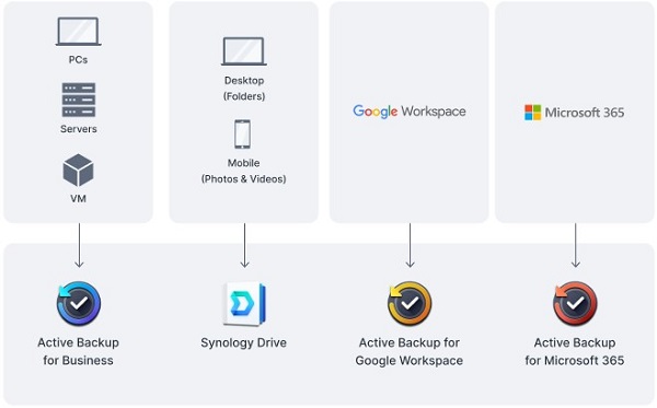 Hợp nhất và tự động hóa các tác vụ sao lưu cho PC, máy chủ tập tin, máy ảo, ứng dụng SaaS, v.v. với Active Backup Suite. Quản lý các bản sao lưu thiết bị từ xa thông qua một cổng thông tin tập trung và nhanh chóng khôi phục các tập tin cụ thể hoặc toàn bộ thiết bị để duy trì hoạt động kinh doanh. Tận dụng các giải pháp sao lưu từ xa tích hợp, được thiết kế để bảo vệ dữ liệu với cấu hình sao lưu 3-2-1 liền mạch.